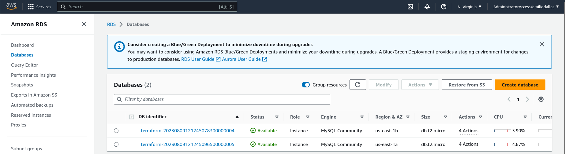 Also creates two MySQL databases in RDS in two private subnets in two availability zones.